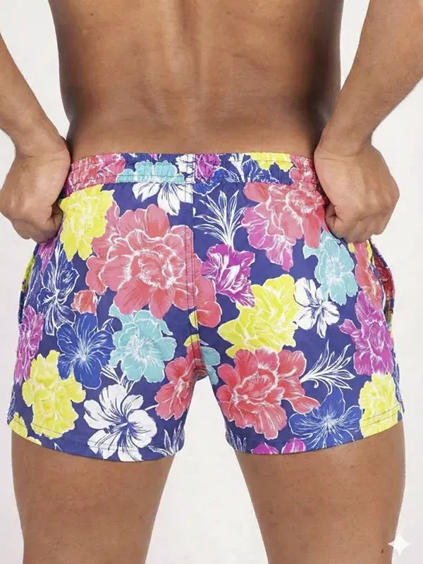 en rojo, amarillo, morado y turquesa convierten este short en el protagonista inmediato de la playa
