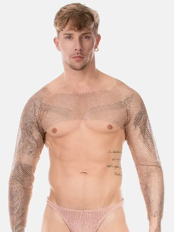 El Bolero Blinky Nude de Barcode Berlin está pensado para quien quiere un look llamativo, pero sin estridencias. El tono nude crea un efecto visual muy limpio (casi “segunda capa”), mientras que el strass añade destellos sutiles que aparecen con la luz y desaparecen cuando te mueves a sombra. Es justo esa mezcla: discreción de color, impacto de acabado.