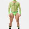 Este Neongreen es un golpe de frescura que inyecta energía a tu look. Su diseño de rejilla permite un juego visual perfecto entre lo que se muestra y lo que se oculta, dándote ese toque sensual sin perder la esencia deportiva. Con mangas largas y un corte ceñido que resalta tu figura, el body en verde neón transforma cualquier ocasión en una oportunidad para brillar.