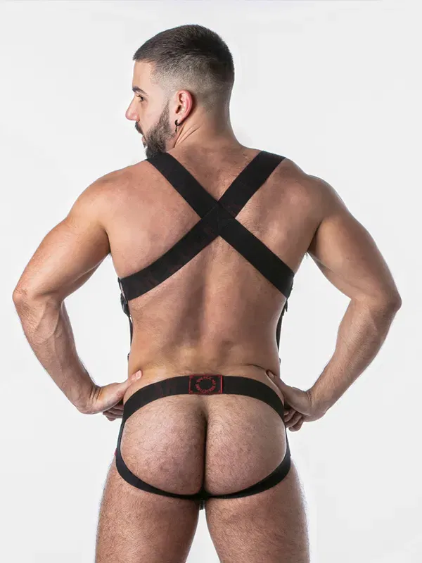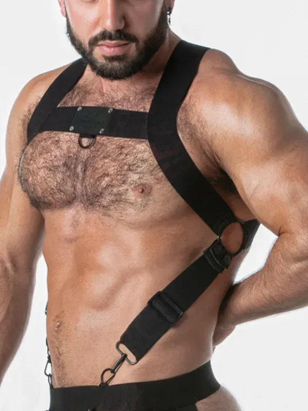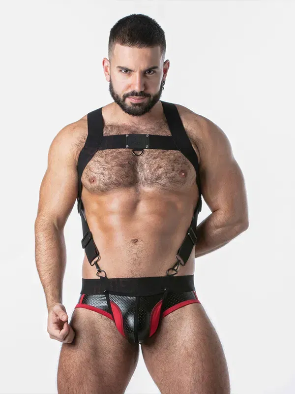 Si tu código es el rojo, este arnés para hombre está hecho para mandar mensajes claros desde la puerta del club.