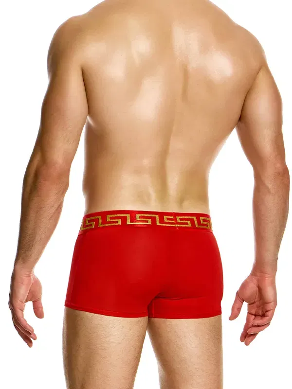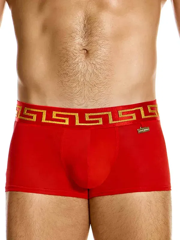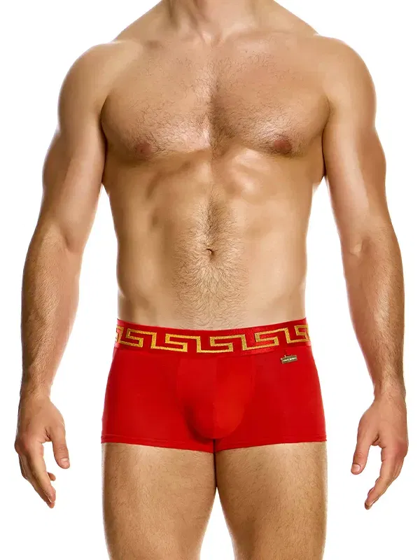 Eleva tu confort con un diseño icónico: Selecciona tu talla y añade el Bóxer Meander Rojo a tu carrito para experimentar la excelencia del diseño griego.
