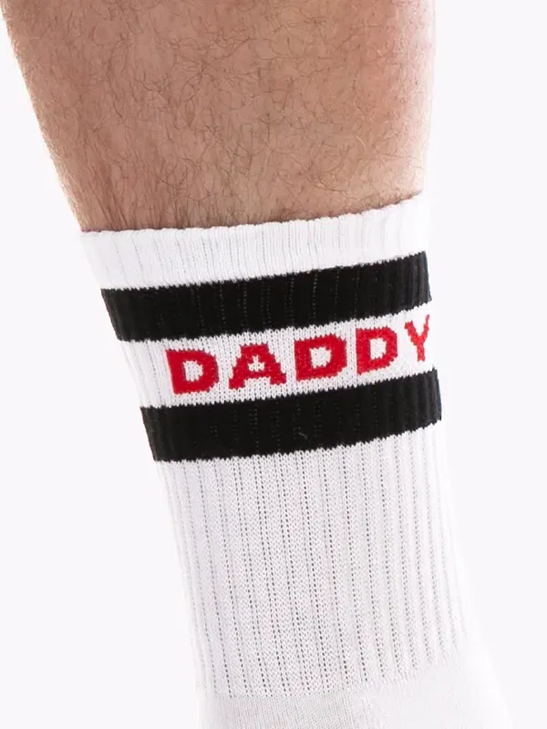 Calcetines Barcode Berlin Half Socks Daddy — blanco limpio y tipografía roja