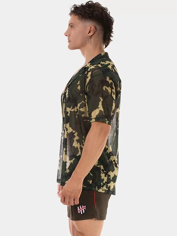 - ¿Es adecuada para clubbing o Pride? Sí, es una camisa mesh camo pensada para destacar en fiestas y eventos.