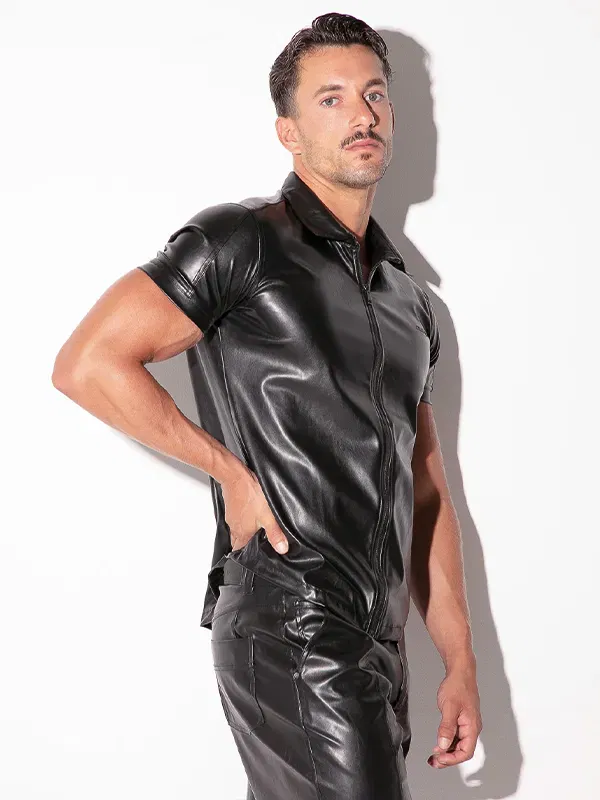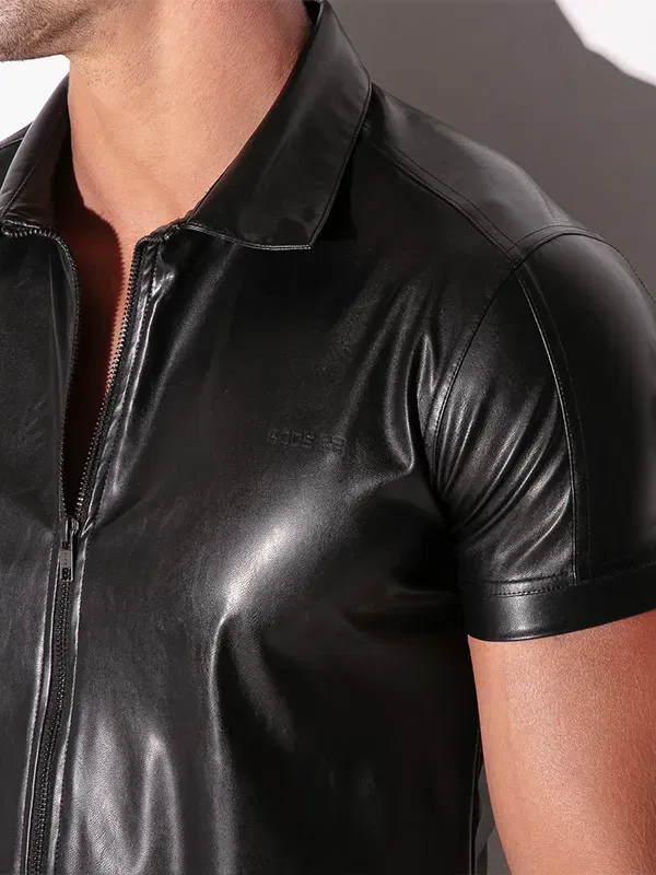 Camisa Code 22 SF efecto cuero negra: estructura y cremallera frontal