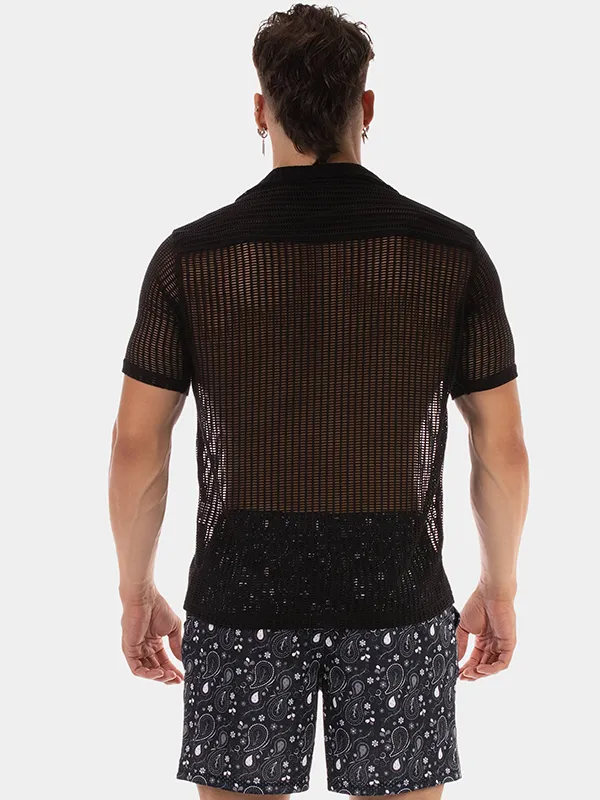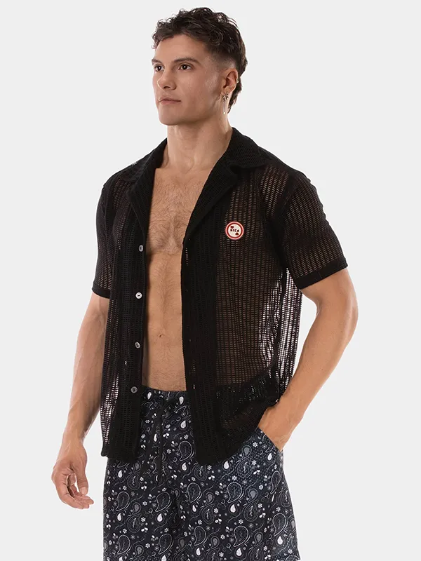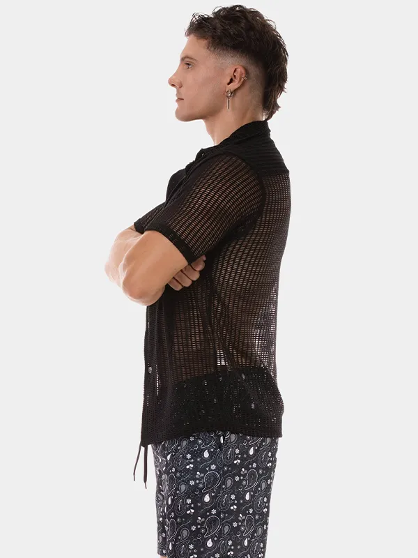 La camisa Alinur es valorada por su equilibrio entre la formalidad de una camisa y la transgresión de la rejilla. A diferencia de las prendas de mesh básicas, su cuello y tapeta de botones le confieren una presencia «premium» que eleva cualquier conjunto de clubwear. Consejo de estilo: Úsala abierta sobre un arnés de la serie DUO JAVED para crear un juego de texturas y líneas industriales de alto impacto.