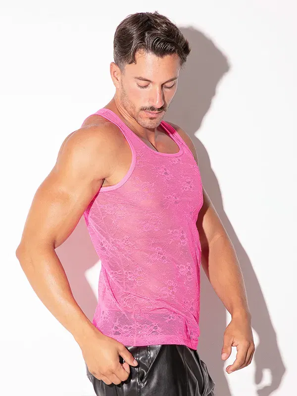 Diseñada en encaje floral con elastano, esta camiseta transparente se adapta al