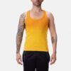 El efecto degradado entre el amarillo y el naranja le da un aire veraniego y juvenil, ideal para quienes disfrutan de los tonos cálidos y buscan una prenda que combine con una amplia gama de opciones de ropa. Su diseño sin mangas y su estilo desenfadado se adaptan perfectamente a ambientes tanto deportivos como casuales.
