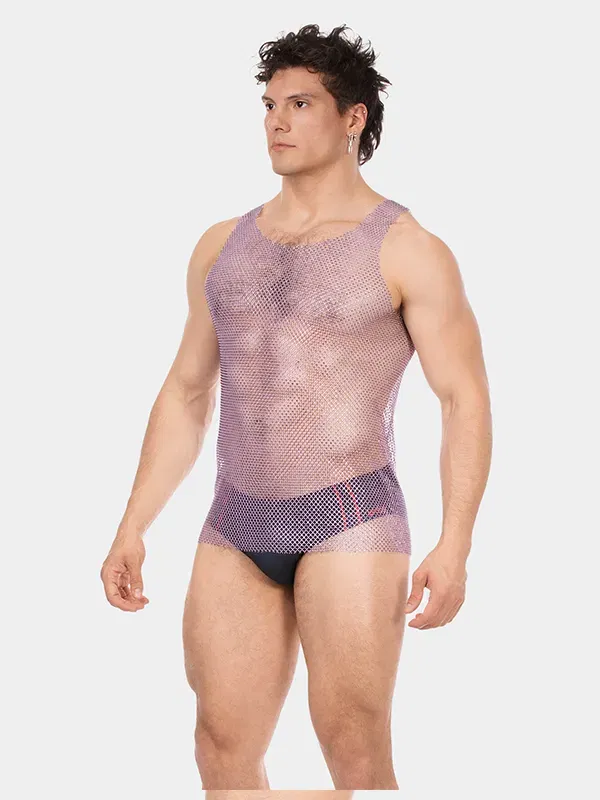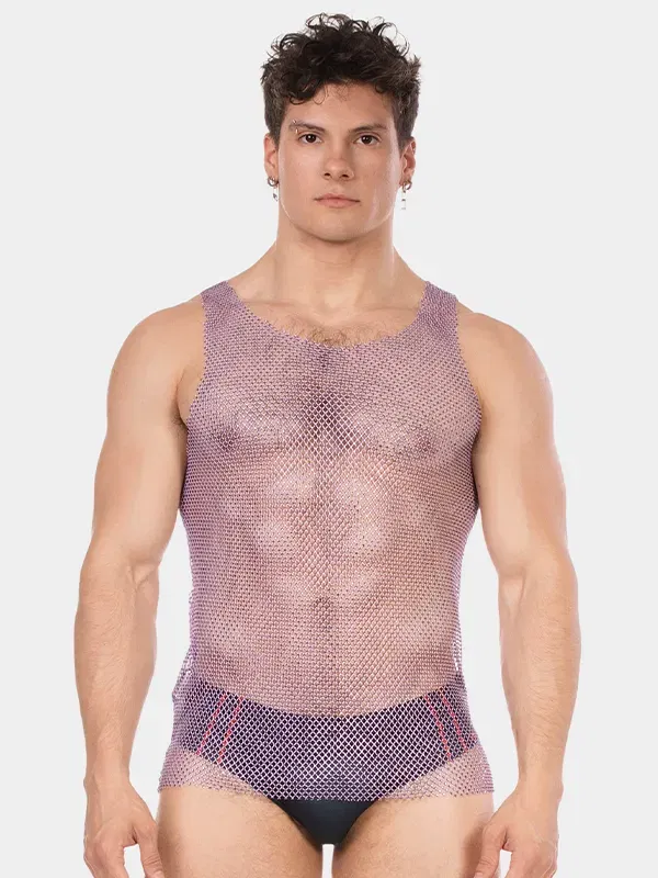 La camiseta de tirantes Blitzy de Barcode Berlin combina audacia y elegancia en un diseño único. Este modelo destaca por su malla dorada y negra, que no solo resalta tus músculos, sino que también refleja la actitud segura de hombres que no temen destacar. Es ideal para fiestas, eventos especiales o para añadir un toque atrevido a tu estilo diario.