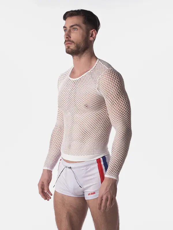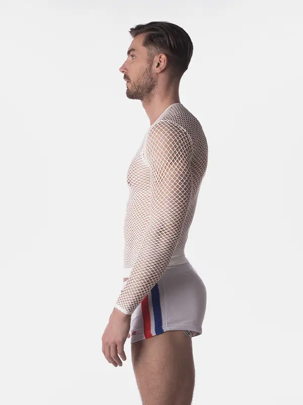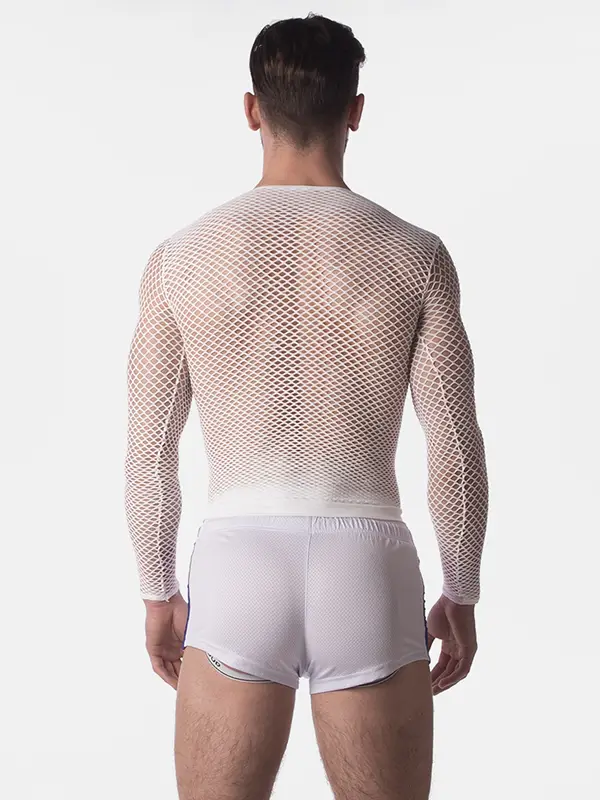 Hay prendas que no “gritan” diseño: lo afinan. La Camiseta Rejilla Seamless Barcode Berlin Capo Blanco es exactamente eso: una capa ligera, limpia y muy pensada, hecha para sumar textura y aire sin cargar el look. Su rejilla blanca, de trama amplia y regular, crea un efecto visual nítido y moderno que funciona igual de bien con shorts técnicos, denim claro o bajo una camisa abierta.