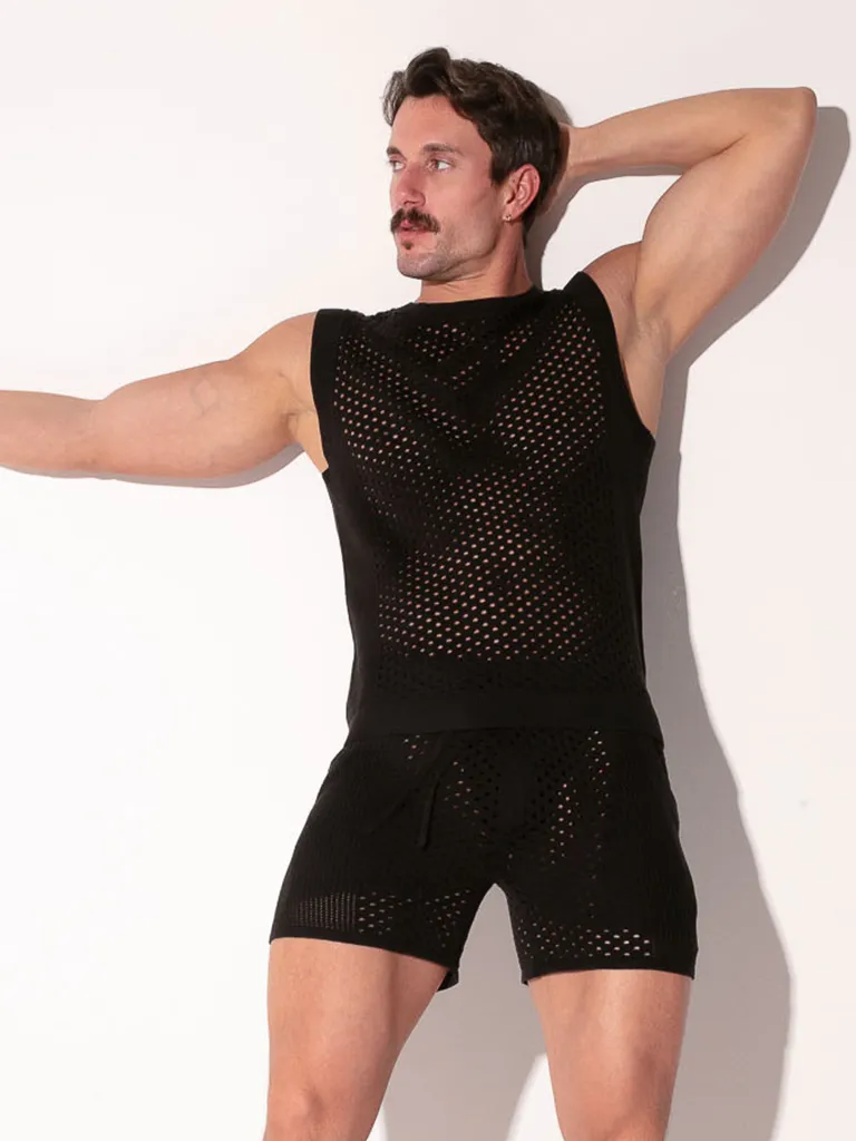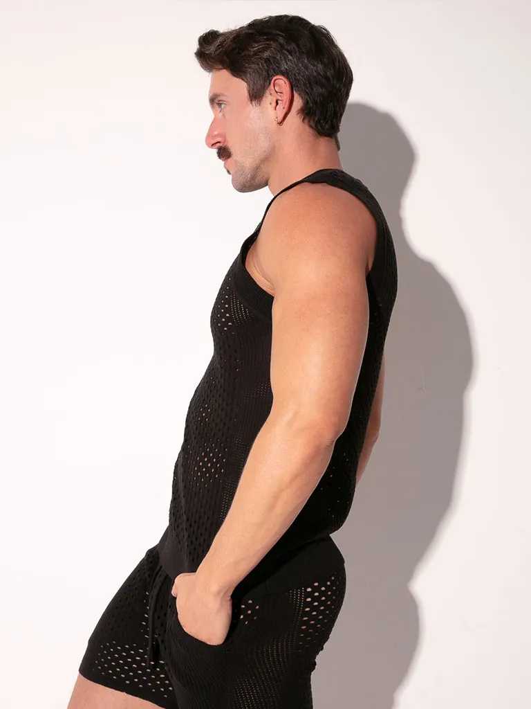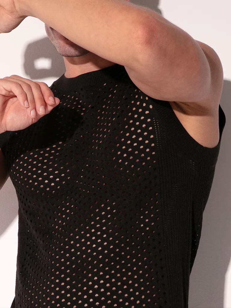 Camiseta de tirantes Code 22 Mosaic Negra de punto con diseño calado