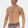 Usa una cinta métrica para medir el contorno de tu cintura. Encuentra el punto natural entre la parte superior de tus caderas y el final de tus costillas. Envuélvelo con la cinta métrica de manera cómoda. Consulta en la tabla inferior qué talla de ropa interior o bañadores te corresponde. También puedes tener en cuenta la equivalencia con las tallas de pantalón que aparece en dicha tabla.