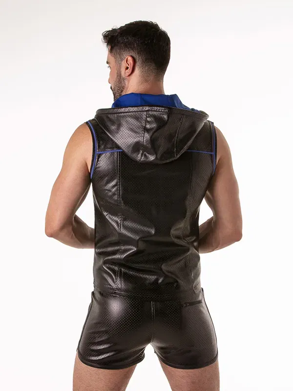 Chaleco Locker Gear Rub It Hoodie negro azul: brillo fetish con capucha