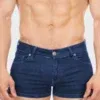 Atrevido, ajustado y con un punto provocador. Este pantalón corto vaquero para hombre en tono lightblue es la versión más corta del modelo Jack, con un corte ceñido y tiro bajo que deja poco a la imaginación. La pernera se ajusta sin apretar, realzando glúteos y paquete gracias al efecto moldeador del denim elástico.