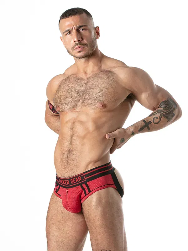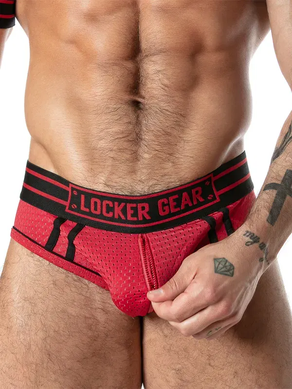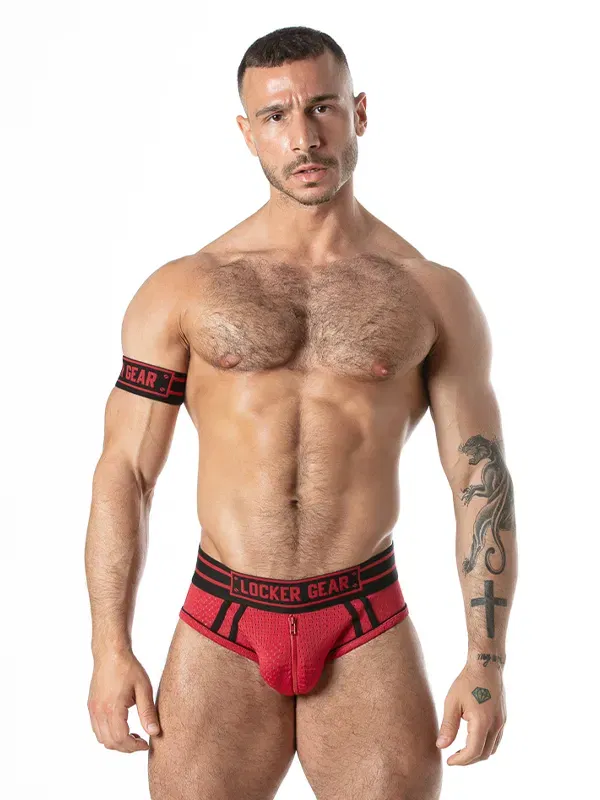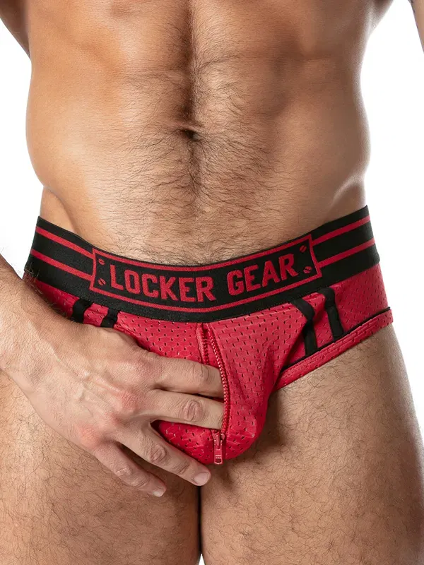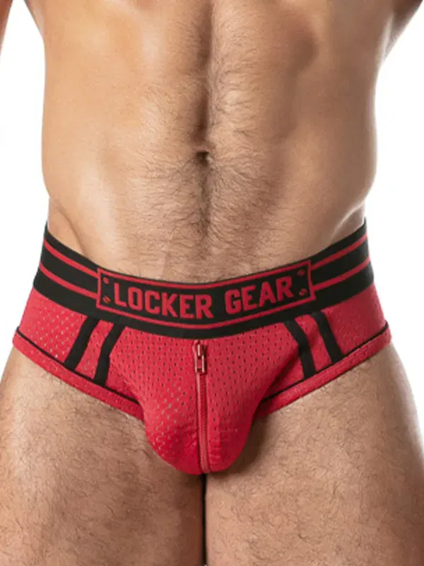Jock Brief Locker Gear Sweat It Rojo: rejilla, cremallera y actitud