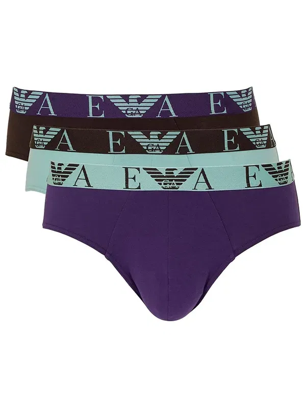 Pack 3 Slips Emporio Armani Algodón Elástico – Morado/Marrón/Verde Agua (AF10778)