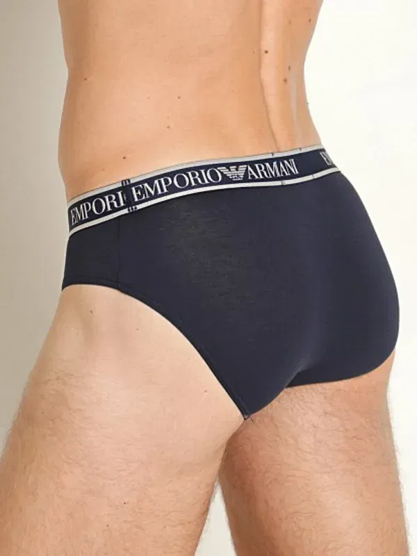 Este pack 3 slips Emporio Armani combina menta y lila (dos tonos claros muy actuales) con un azul marino que actúa como base seria. El punto diferencial está en el remate: la cinturilla Framed Logo en azul marino estructura el conjunto y lo hace coherente, incluso mezclando colores distintos. Es un pack pensado para rotación real: dos opciones claras y una oscura, sin caer en el negro total.