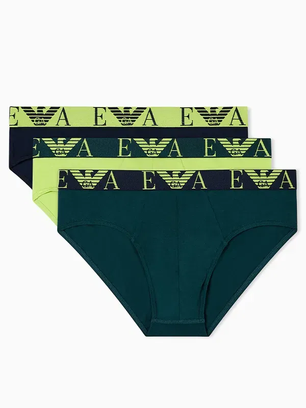 Pack 3 Slips Emporio Armani Verdes Algodón Elástico (AF10778)