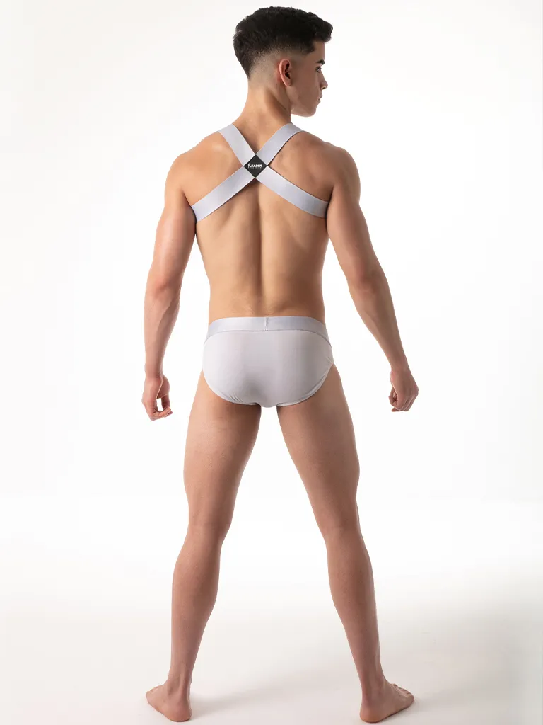 El Pack Slip + Arnés Leader Essentials Gris mantiene la misma base del conjunto negro: un arnés elástico con banda frontal con logo LEADER y espalda en X, y un slip con frontal limpio, cinturilla ancha con logo y trasera cerrada. La diferencia aquí está en la lectura visual. El gris suaviza el contraste del conjunto y hace que las dos piezas se vean más integradas, más uniformes y más contenidas.