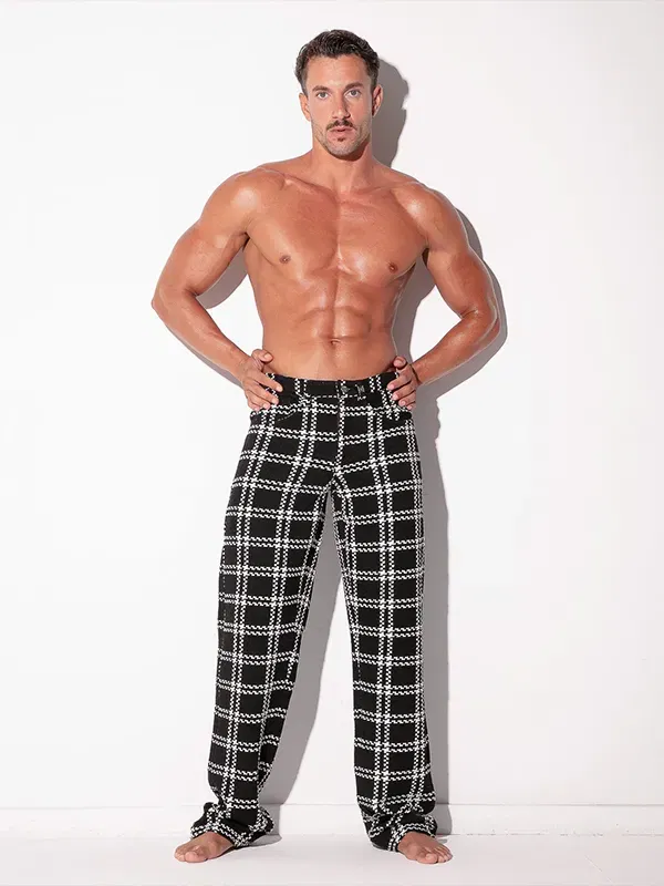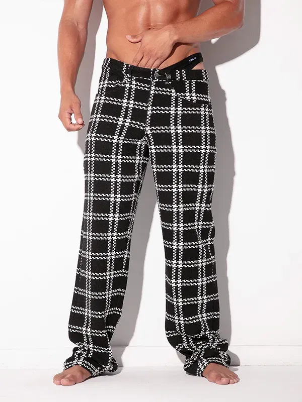 Cameron es un pantalón de cuadros en jacquard negro y blanco que aporta presencia sin perder comodidad. El patrón recto estiliza, el tejido texturizado suma relieve y el ligero stretch acompaña cada paso. Solo, con camisa blanca o con la bomber Cameron a juego: listo para dominar del afterwork a la noche.
