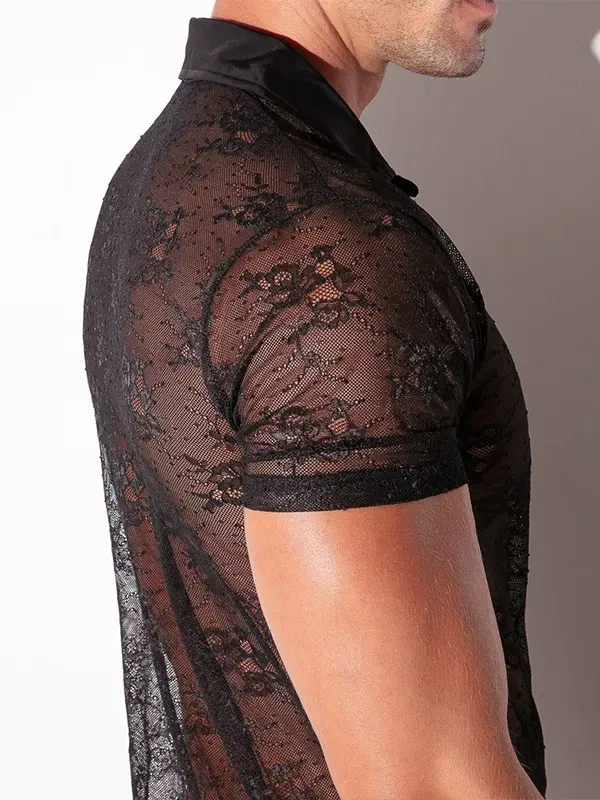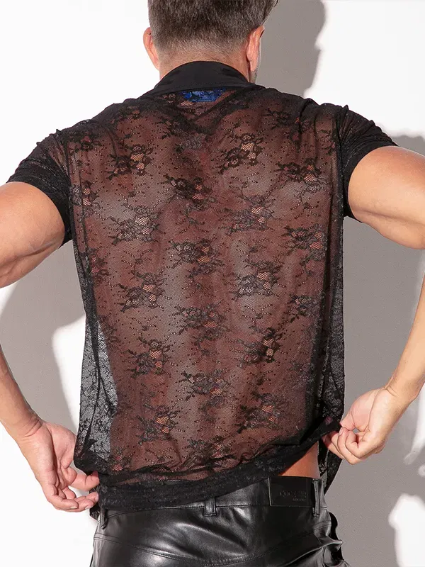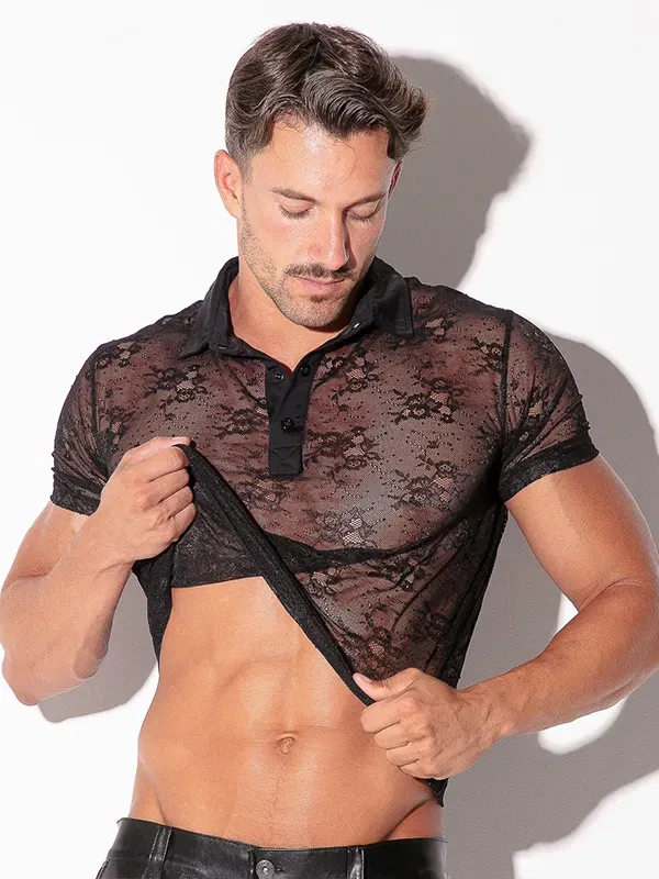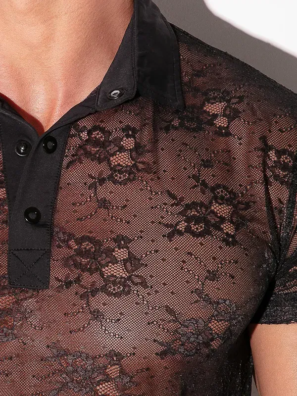 El polo transparente está confeccionado en encaje floral con elastano para una caída