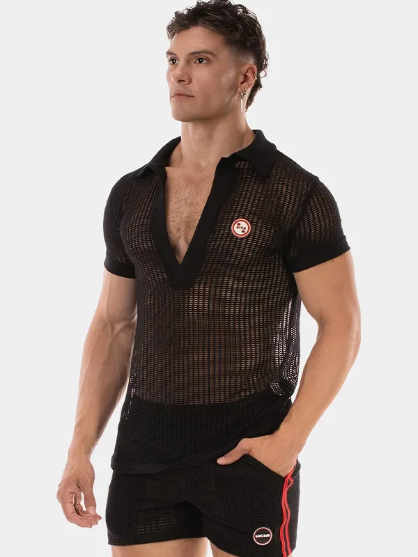 El Polo de rejilla Barcode Berlin Baris Negro es una pieza audaz que subvierte el diseño del polo clásico para convertirlo en un referente del «clubwear» y la moda técnica contemporánea. Confeccionado en un tejido de malla (mesh) de alta calidad totalmente transparente, este polo ofrece una ventilación máxima y una estética provocadora, ideal para entornos de ocio nocturno, festivales de vanguardia o eventos donde la identidad visual es la protagonista.