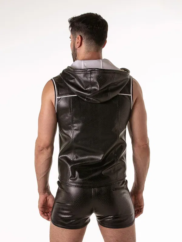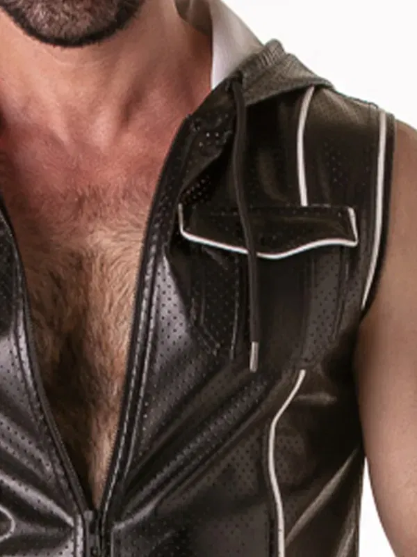 Este chaleco con capucha para hombre de la línea Rub It juega en la liga fetish, pero con la comodidad de una sudadera ligera.