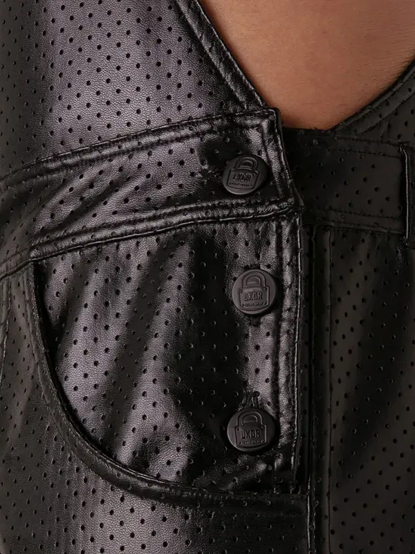Imagina entrar en el club con este peto corto de cuero sintético perforado y notar cómo todas las miradas se giran a tu paso.