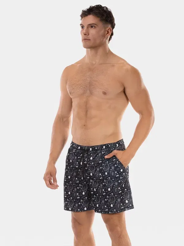 El Short Barcode Berlin Paisley Negro aporta actitud y comodidad en un estampado paisley negro/gris.