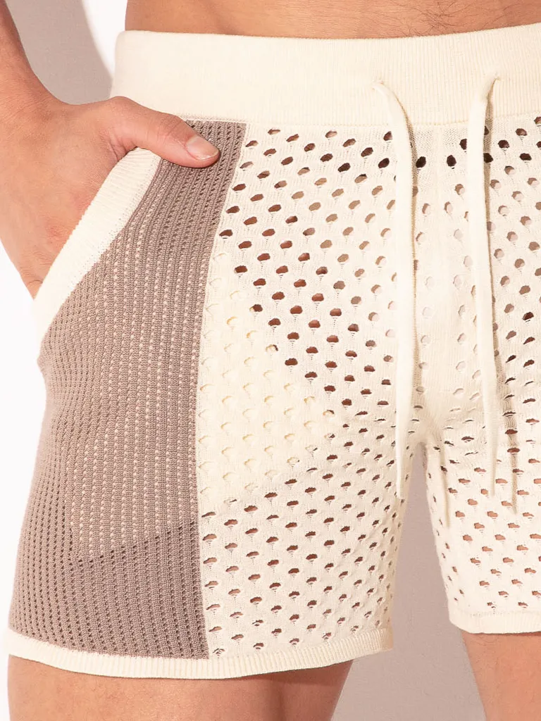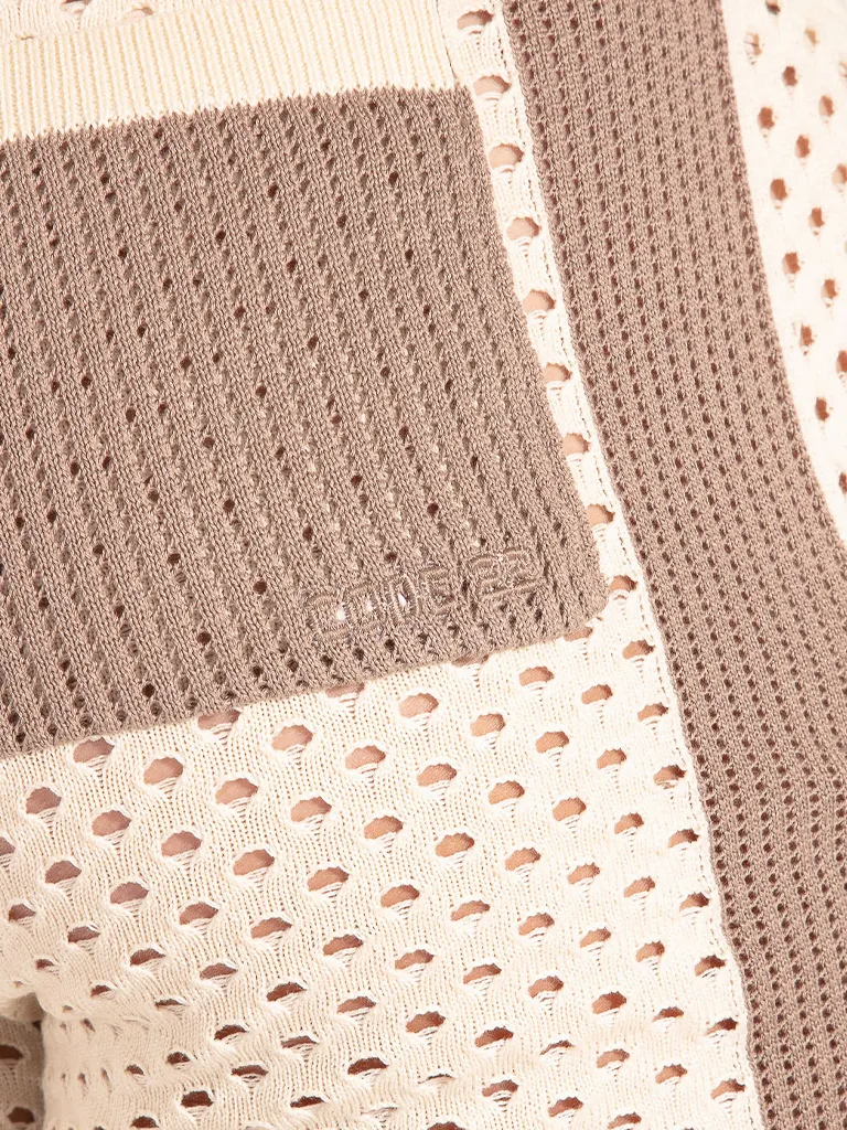 Short Bermuda Code 22 Mosaic Taupe de punto con diseño calado y paneles en contraste