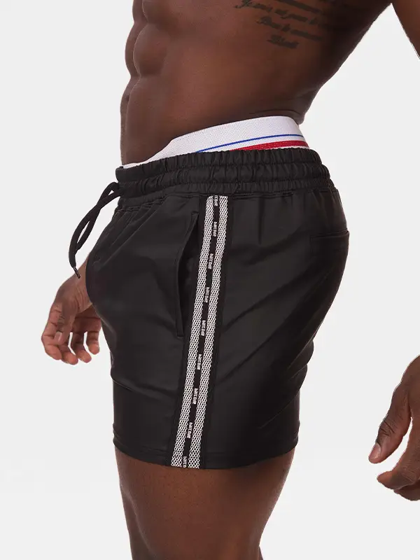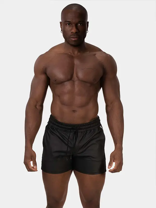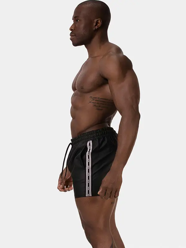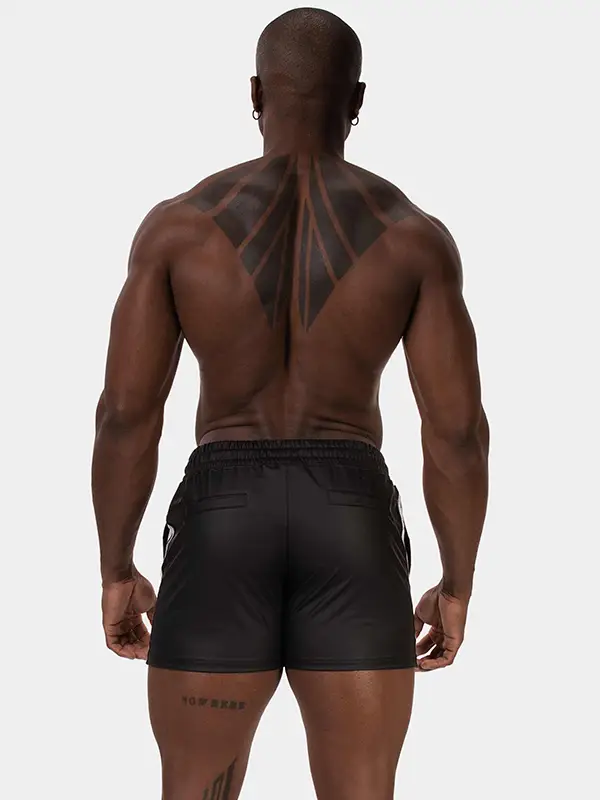 Short efecto piel negro blanco Barcode Berlin Zulu: diseño técnico y contraste gráfico