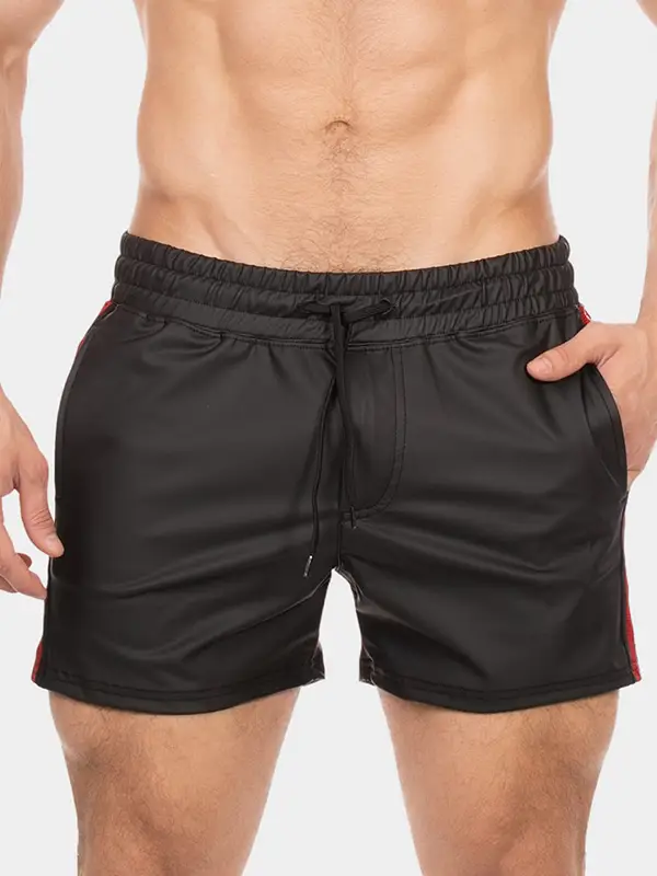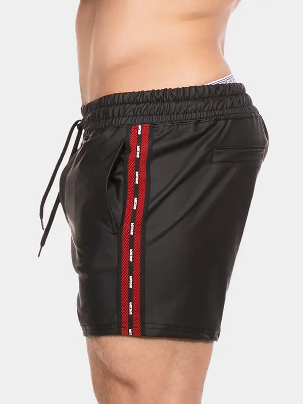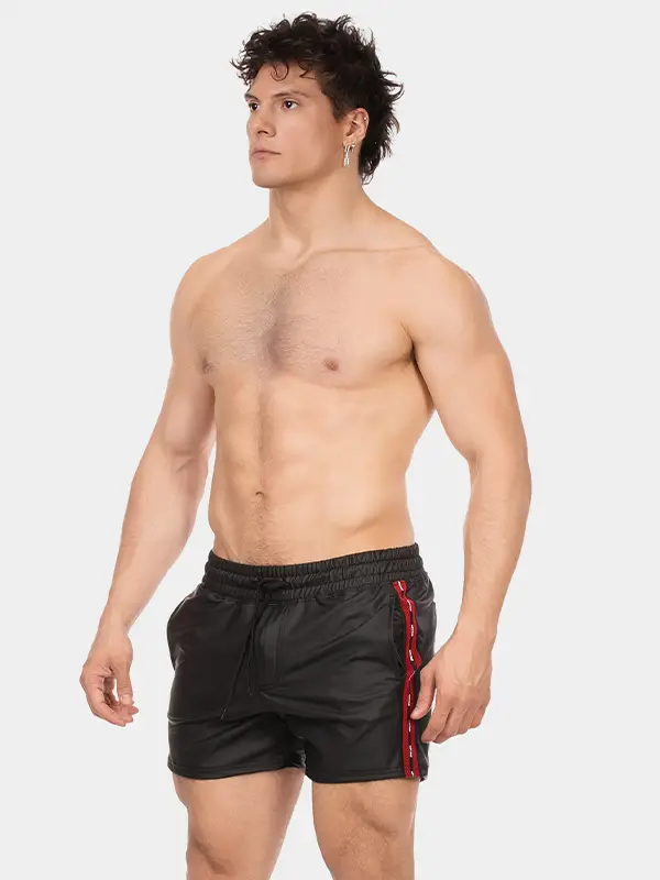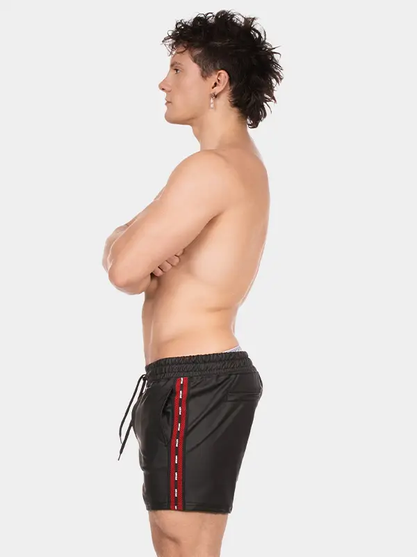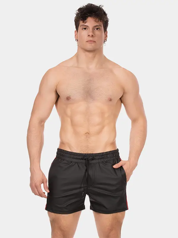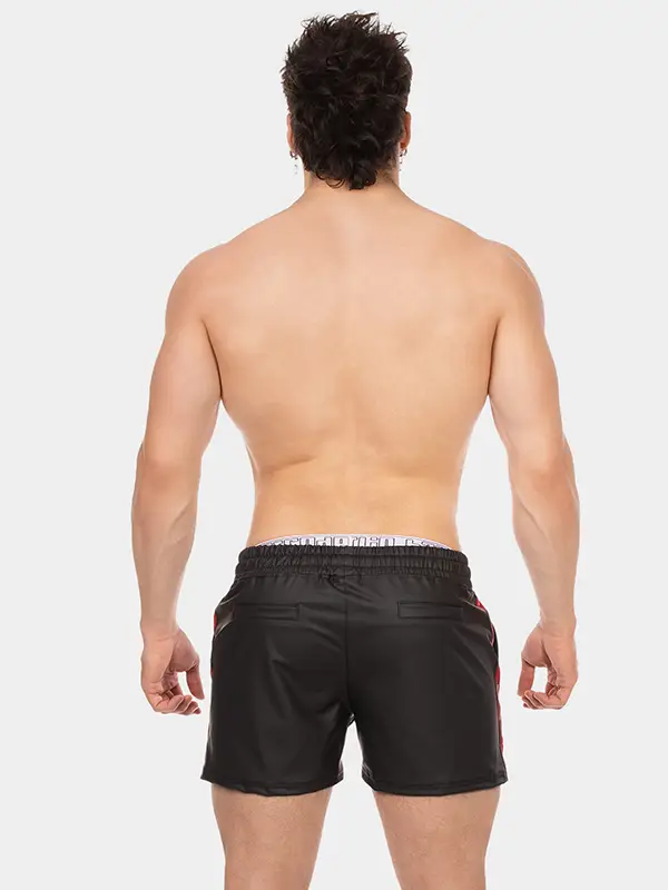 Short efecto piel negro rojo Barcode Berlin Zulu: diseño técnico y contraste de alto impacto