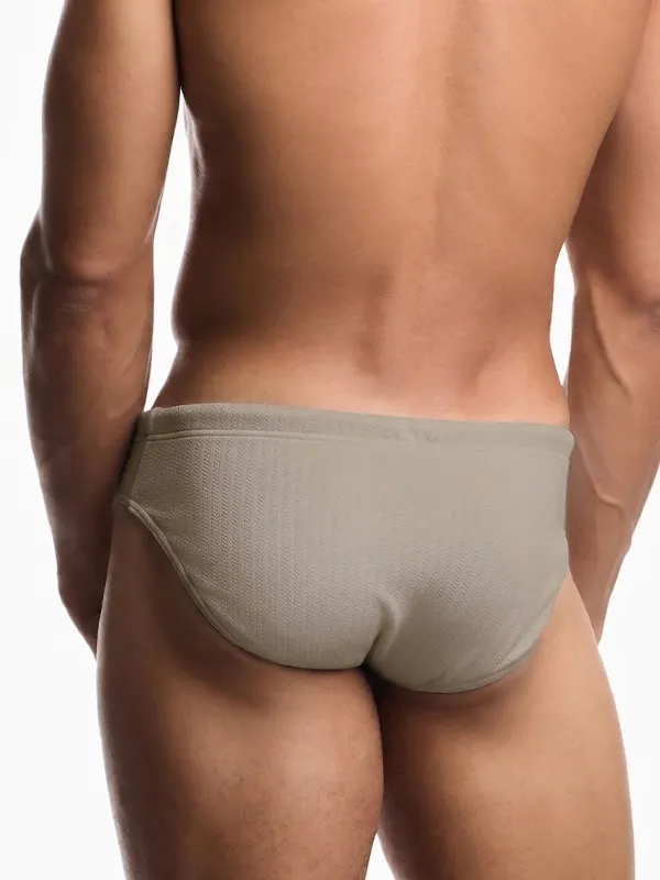 Esta variante tiene una ventaja clara dentro del grupo: el tono taupe abre una vía de compra más neutra y más versátil que el rosa o el verde, pero sin caer en la obviedad del negro o el azul marino. Sumado a la textura espiga, consigue una imagen cuidada, premium y muy fácil de defender en una ficha orientada a slip de baño de hombre.