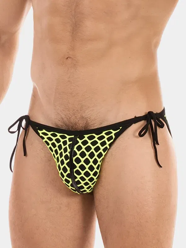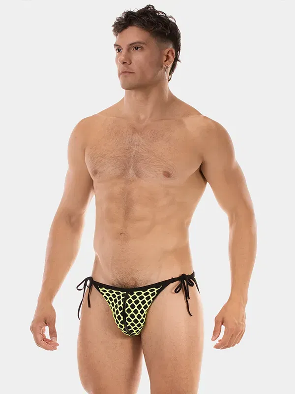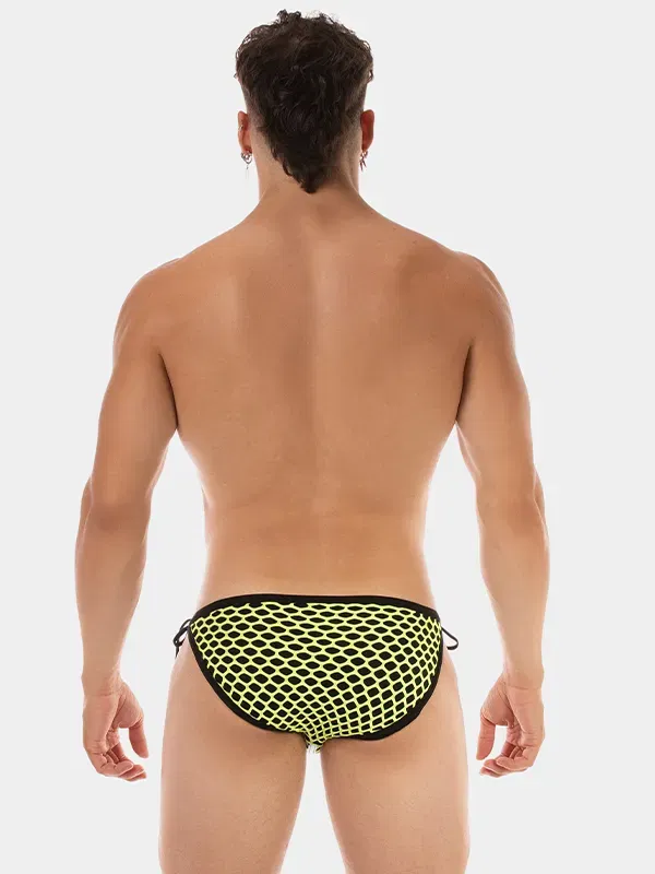 Luces estroboscópicas, bass profundo y ese brillo neón que te encuentra al segundo. El Slip Roso Neonyellow-Negro nace para el club y para quien disfruta del detalle: lazos laterales que regulan el ajuste y una rejilla de panal en amarillo neón que enmarca la parte frontal con actitud.