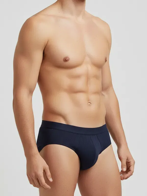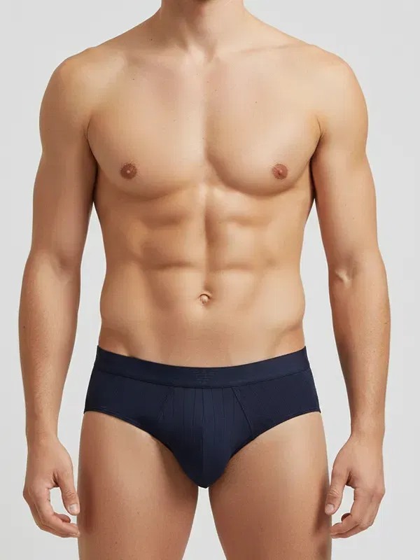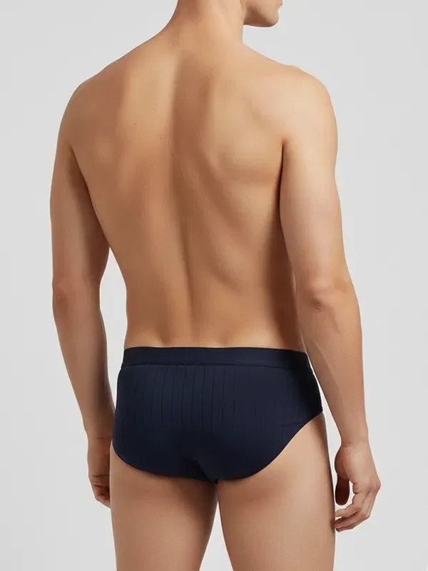 Hay básicos que se notan “básicos” en cuanto te los pones. Y luego están los que desaparecen: no porque no tengan detalle, sino porque todo encaja. El Slip Emporio Armani AF15000 en azul marino está en ese segundo grupo. A primera vista se ve sobrio; cuando te acercas, aparece la trama acanalada (canalé) vertical que le da estructura y un acabado más cuidado que el punto liso de siempre.