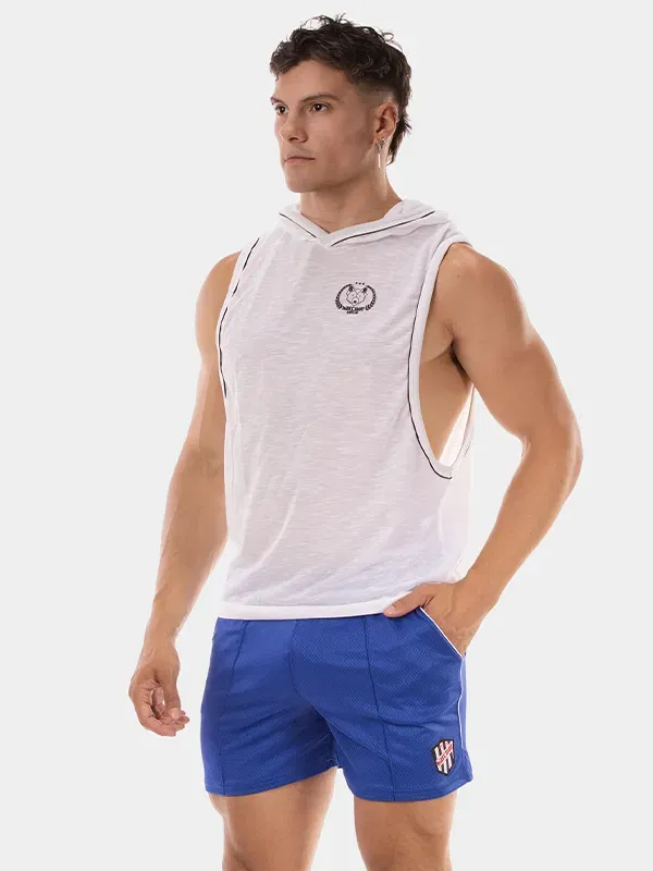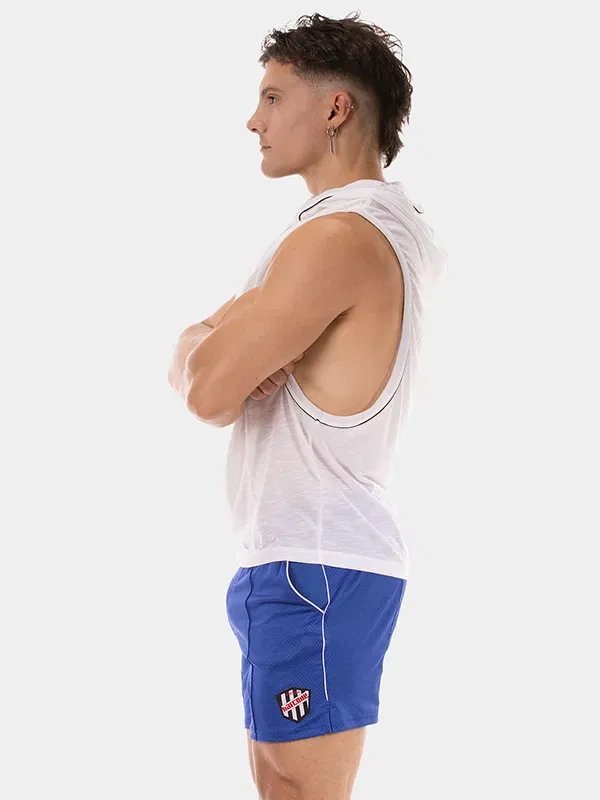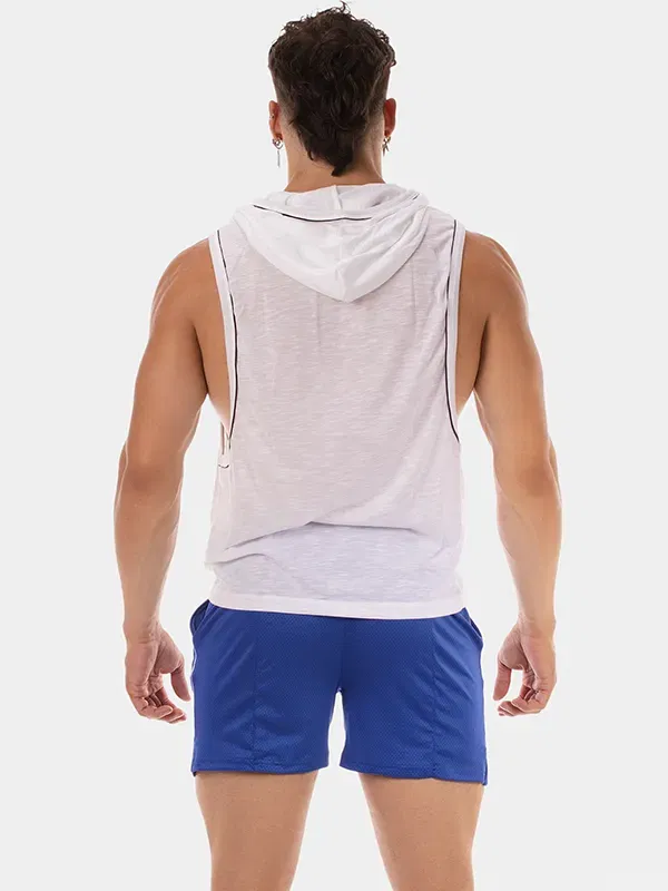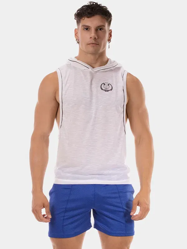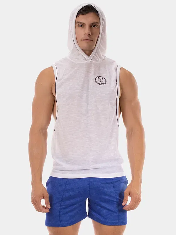 - Sudadera sin mangas blanca con capucha en tejido flamé ultraligero.