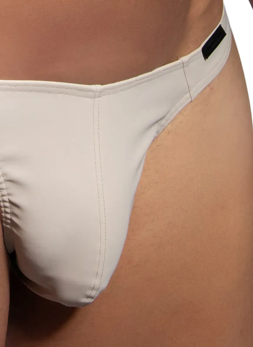 Minimalismo audaz con tacto seda y acabado mate. El Tower String M2486 en tono arena ofrece un ajuste de tiro bajo y una espalda mínima que realza la silueta.