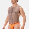 La camiseta Bling Plateada está confeccionada en 100% poliéster, lo que le da un toque ligero y cómodo sin perder su estilo. La malla plateada permite una sutil transparencia que insinúa y seduce, ofreciendo un look moderno y provocador. Su corte sin mangas facilita la libertad de movimiento, ideal para quienes buscan un estilo atrevido con total comodidad. Esta camiseta es perfecta para aquellos que buscan un look impactante y lleno de personalidad.