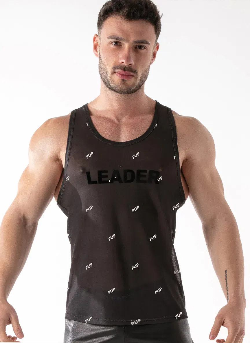 Ligera, elástica y con ese punto juguetón. La Leader ID Mesh PUP utiliza una malla fina semi-transparente que sugiere sin mostrar. En el pecho, el logo LEADER con textura aterciopelada; por toda la prenda, el microprint PUP que refuerza tu identidad.