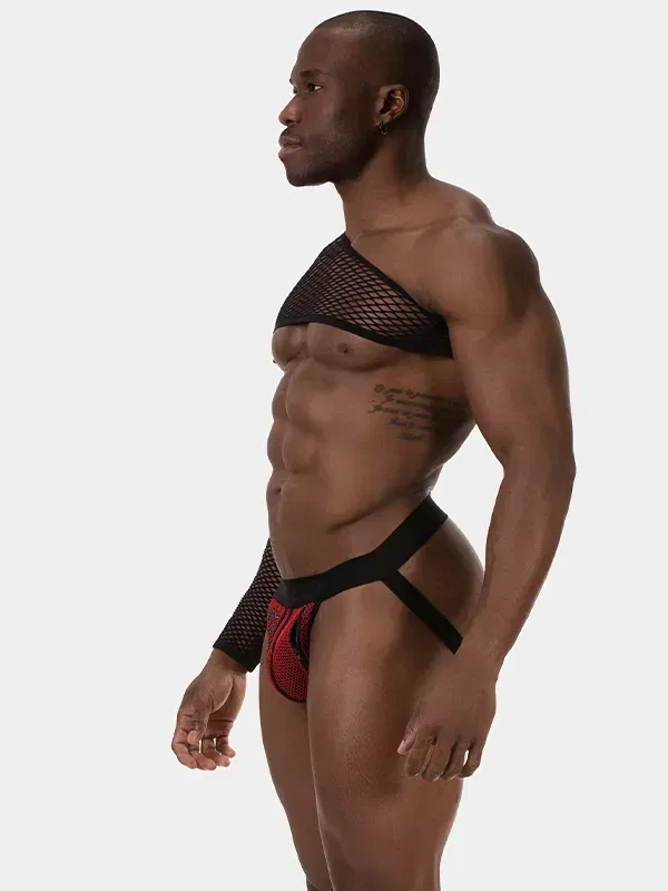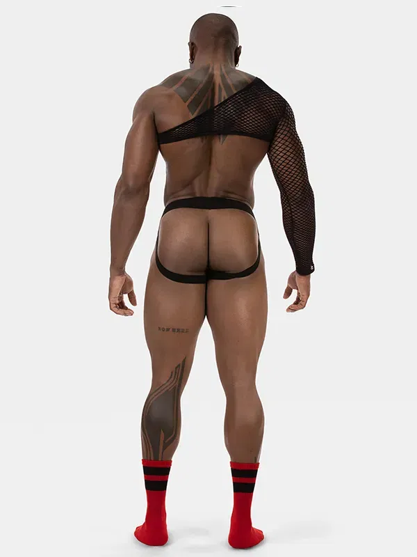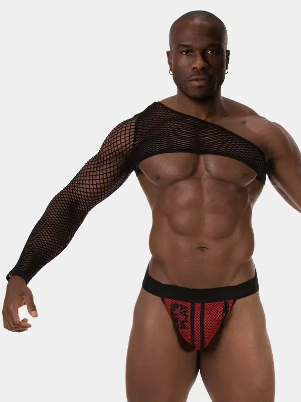 El One Arm Octave convierte el tejido de red en una pieza de arquitectura corporal. Su diseño cruza el torso con una línea diagonal limpia y concentra la fuerza visual en una sola manga. Es un equilibrio calculado: minimalismo por el color negro, e impacto por la asimetría. Al eliminar el concepto clásico de «camiseta», funciona como una herramienta de estilo: úsalo para romper la simetría de un look o para añadir textura sin sumar peso visual.